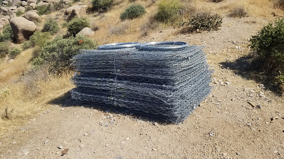 The poor trail design lasted a whopping ten years. They are recaging wash prevention rock. The wire isn't natural. The rock doesn't match the terrain. Cement would work and last fifty years but guessing they deem this the natural option.