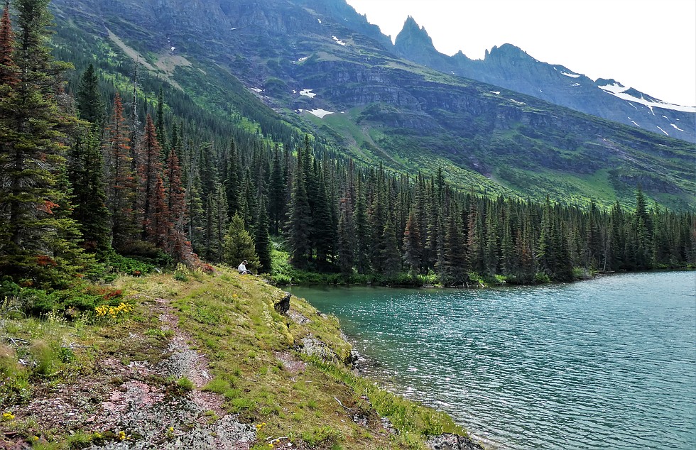 See Tina at the other end of the ledge. Above her, I think the pointy mountain is part of the Lithoid Cusp. Here is a story about an incredible survival from a 600 ft fall while attempting to climb the Cusp from this side https://flatheadbeacon.com/2015/06/29/i ... onal-park/