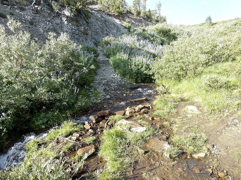 Above Galena Falls, Looking 232º @ Lupine & the trail going UP. 9,115' elevation P1070948