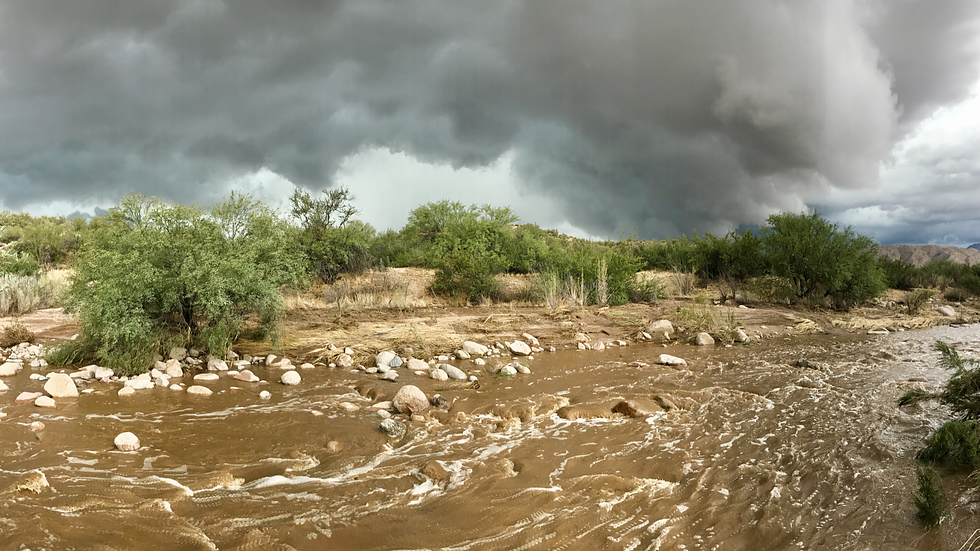 Really scenic clouds over Cottonwood Creek. This may have been the remnants of the cell that spurned that tornado north of the valley a bit earlier. Marks on the bank show the flow significantly down from how high it had been earlier in the day.