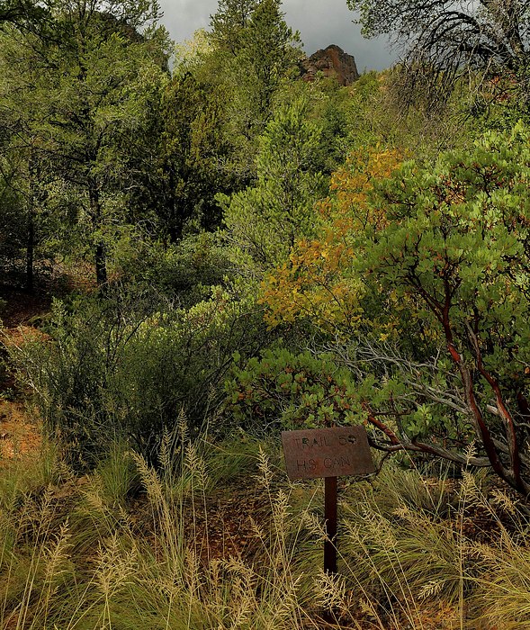 The somewhat obscure sign for HS Canyon. Reportedly, HS Canyon runs in a loop from this point back to a junction to a more northern point on Secret Canyon trail. I could not find the loop. Disappointing, but I likely should have plotted out the loops location more closely, to be sure I could not find it due to it being obscured, as opposed to my just not finding it.