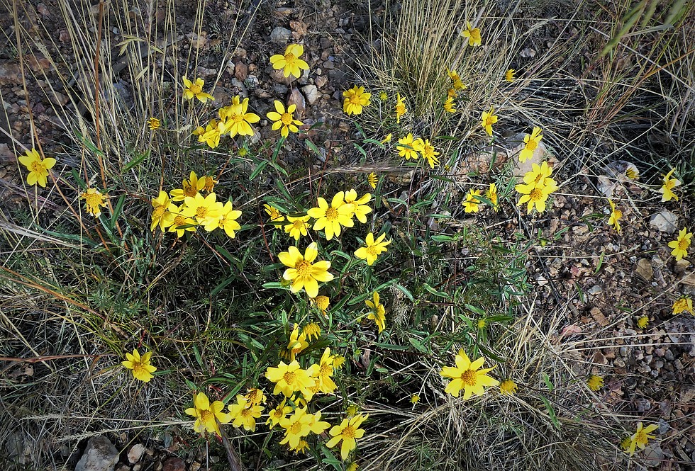 a little closer look at a nice group of Goldeneye.  This is probably Showy Goldeneye. Often growing in small bushy clumps, this bright sunflower is long-lived and abundant in summer and fall mountain meadows, frequently brightening MANY acres.  "Helios" is Greek for "sun" and "meris" for "part of".