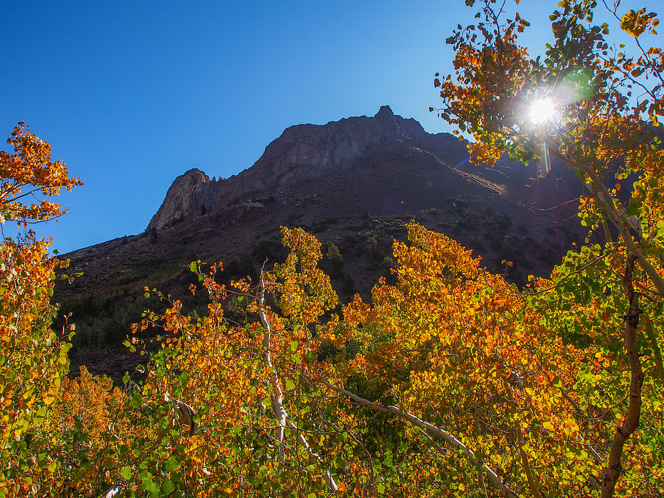 The night before this hike the temperatures dropped down into the teens. When I passed back through this area in the afternoon many of the aspen leaves had turned a dark brown and much of the gold was gone due to the hard freeze the night before.