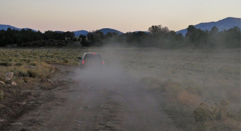 here it is in real time. Very dusty today, both on the hike and the drive. And in the evening, the dust would lie very low.