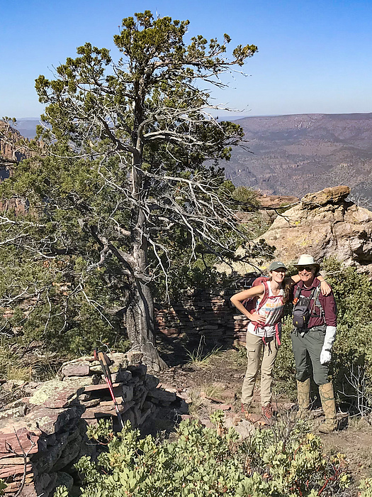 Always nice to meet a new hiking buddy. I was prepared for busting through New Mexican Locust and Manzanita with my rose pruning gloves and snake gaiters. Katie and Lee seem to be able to slip through that stuff with few scratches and have little need for all that protection. I'm just clumsy.