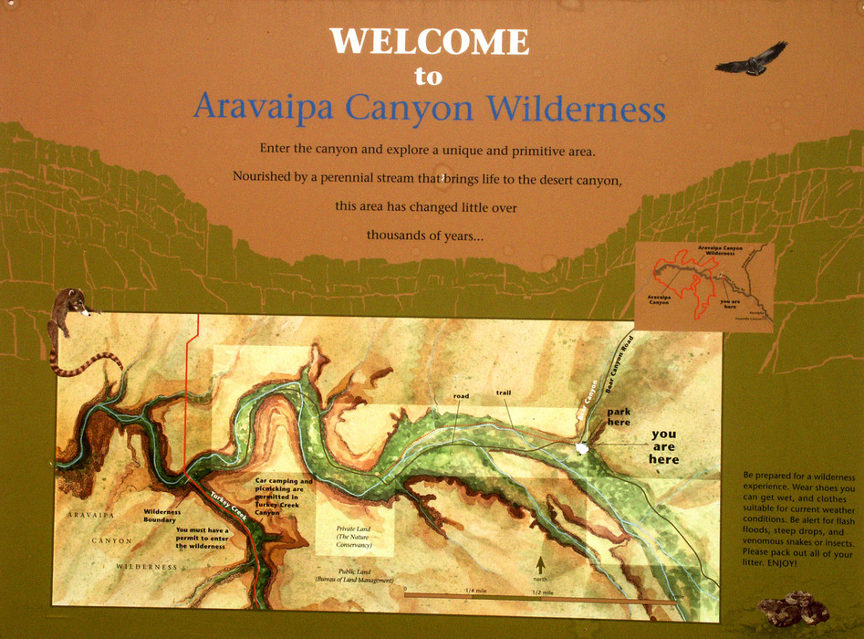 Map near East entrance of Aravaipa Canyon Wilderness area