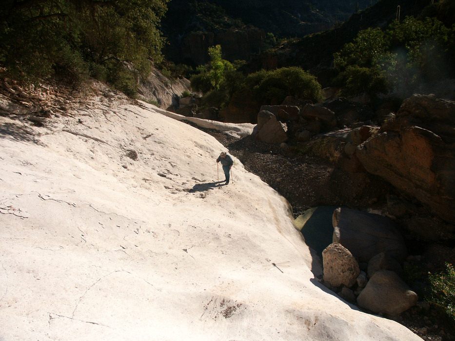 Robert climbs a slick rock section of the rather steep Booger Canyon