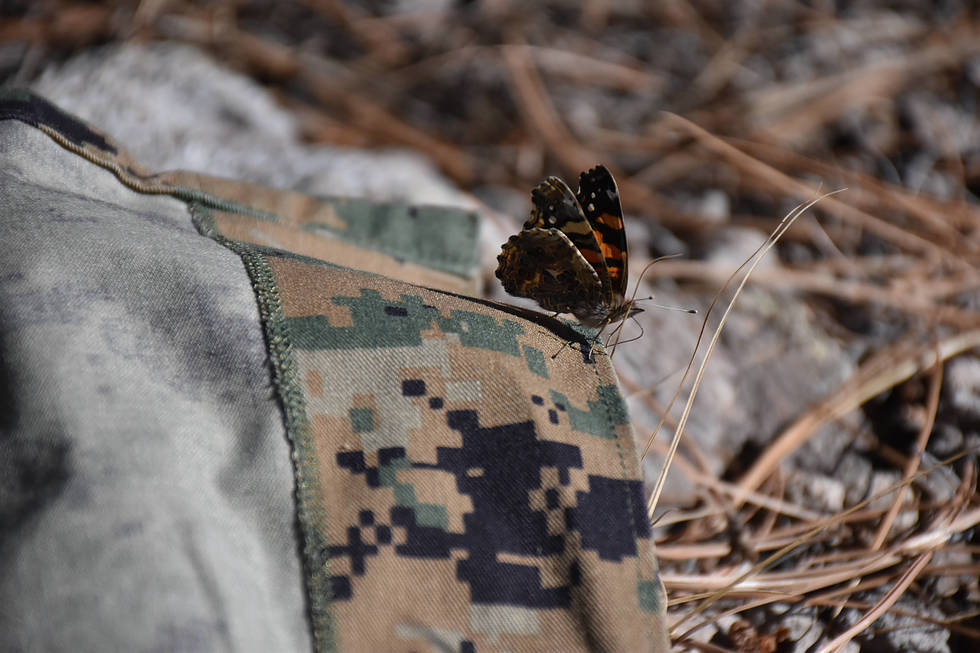 When I saw this I was thinking my eyes were playing tricks, what butterfly has 3, possibly 4 wings. It turns out each wing has two parts that normally overlap slightly and gives the appearance of just one wing on each side. This one was probably old and the parts just don't fit together as they use to. I told him that I can totally relate to that.