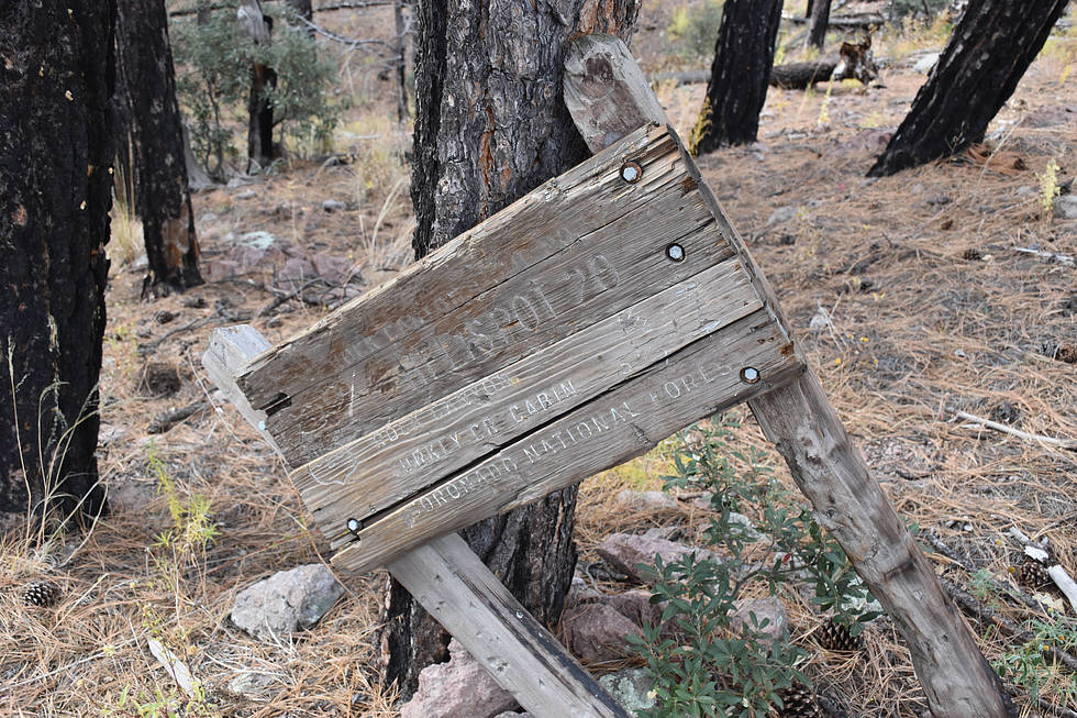 Sign at Rock Saddle where the Rock Creek Trail splits from the Bootlegger and heads down into Rock Creek. This is the only sign at Rock Saddle. The Bootlegger and Rock Creek Trails overlap for about .1 miles. The Bootlegger continues on down the ridge to the Rattlesnake Trail.