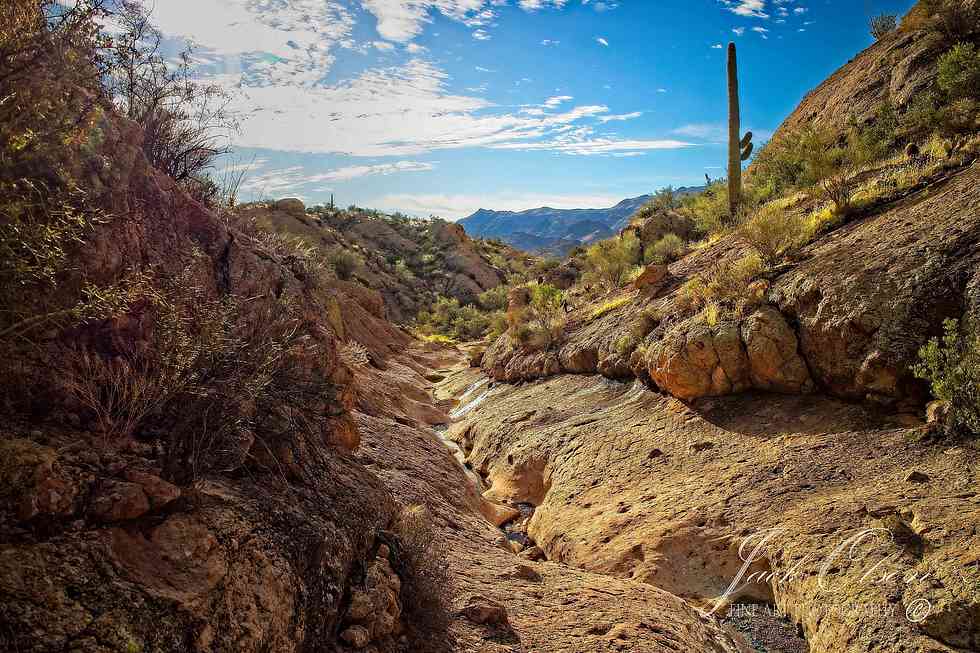 The almost-slot canyon's pools were filled with cold water so gotta walk along the steep sides.