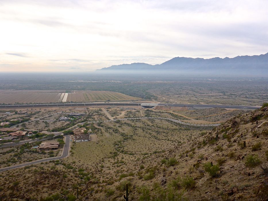 A half mile northeast of the freeway, and 400 ft. above it. I've used the same waypoints every 0.1 miles for the past five years, so I could mark changes at specific locations along the right-of-way. The old pump station at 3303 Pecos Rd. was Waypoint #1. Waypoint #3 became multi-use crossing #1. The road in front of the freeway is 35th Ave., which is the access road to the gated luxury development.