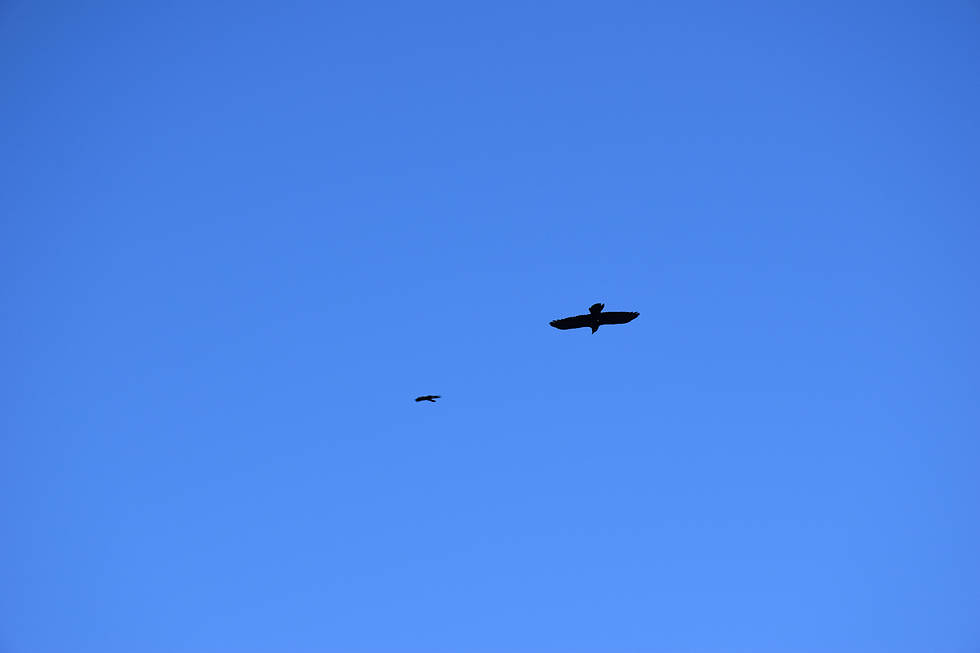 Took a break at the saddle and watched a few crows circling over head. They were checking out the stranger on the saddle. Saw another Golden Eagle while sitting on the saddle, couldn't get a photo of it though. One of the crows was intent on messing with it and continued doing so for as far as I could see. They flew to some distant peaks in a matter of a minute or so and would take me all day to walk that distance.