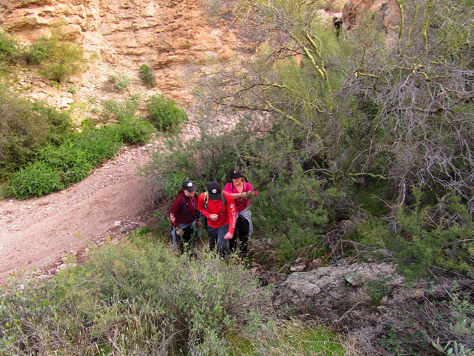 Making our way out of the dead end of the wash up to the road.
