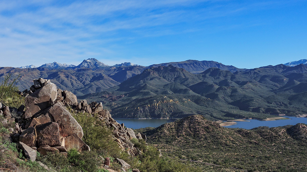 Snow dusted Mazatzal peaks above Bartlett Reservoir.
