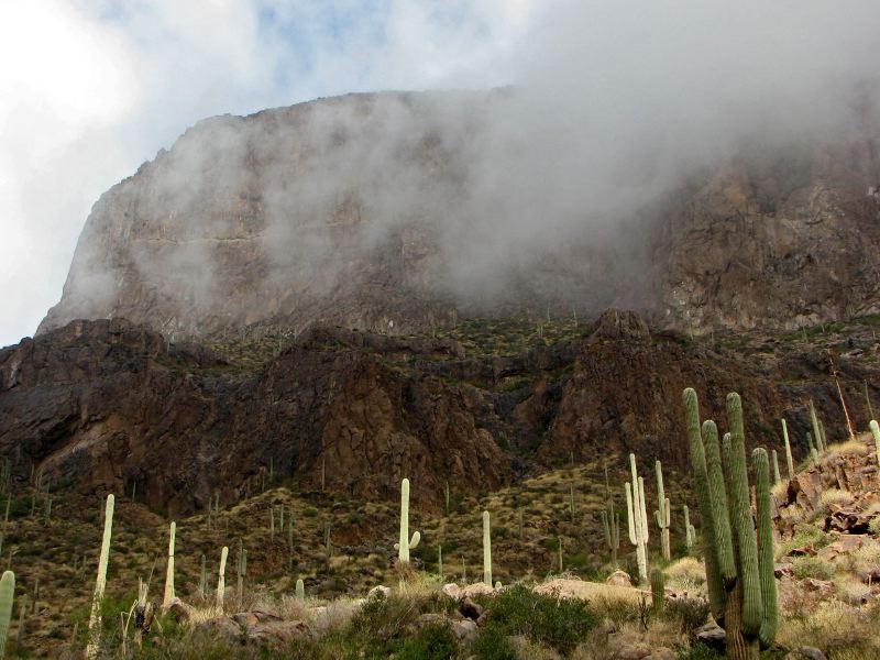 One of our few glimpses of Flatiron. For most of the hike, it was white beyond the foreground cliff