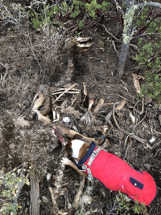 Payton tracked this one down for a few hundred yards, a true bloodhound boxer in her fashionable red coat of course