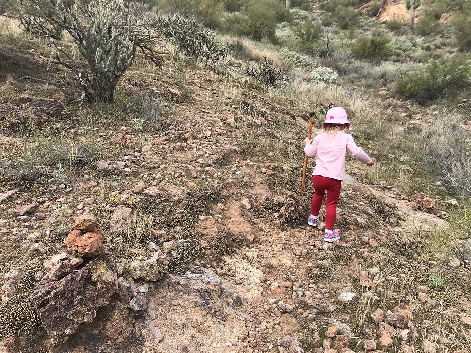 Yup, she's leading the climb up to the horns.