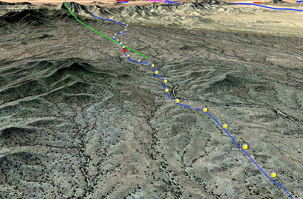 25 geocaches - One each 1/10th of a mile - The red one is the one I logged into.