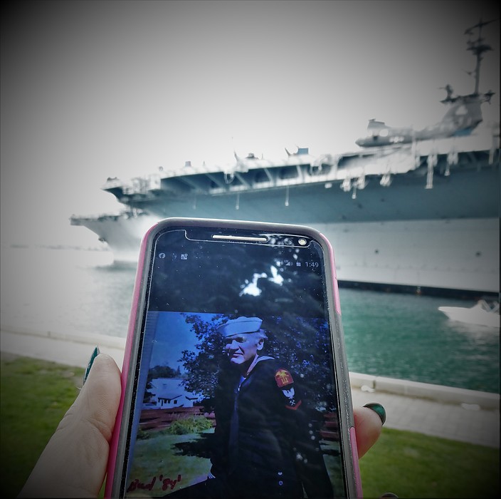 My Uncle Bud was a sailor in 1944-46. He was trained in San Diego 12-1944. I thot it would be fun to take this photo of him from 1984 (he was quite proud that he could still fit in his uniform) next to the Midway. He served aboard an LST. The Midway did not serve in WWII. [ youtube video ] FYI My Uncle Bud was a videoographer (sp?) as well as my parents and my Uncle Gus. Sadly when they moved Uncle Bud to a Senior Center they threw out all his movies. Very sad!
