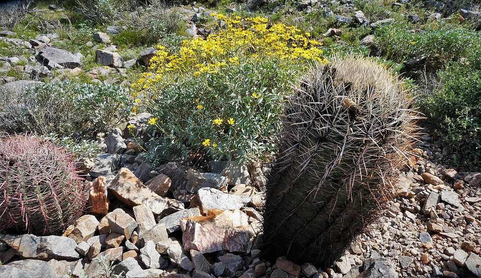 There isn't a lot of brittle bush out here but this was a nice bloomer between the cactus.