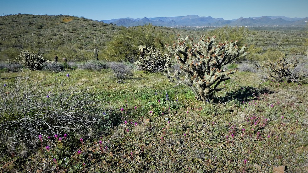 Looking toward the North with Owl Clover in the foreground and some lupine. This section had Owl Clover on both sides of the trail.