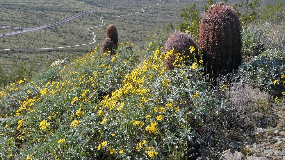 now up on the Ridge of 1953 looking west. That is the Paseo Pathway you can see clearly. The Ocotillo Trail somewhat mimics that to its right.