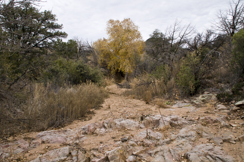 This is the unnamed wash you'll be heading up, Turret Peak is the mountain just to the right of tree