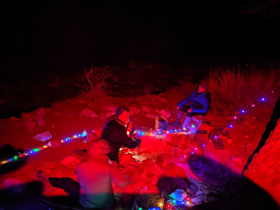 Powerbank USB powered copper string LEDs. Weigh nothing, use very little power - great for places with no fires.