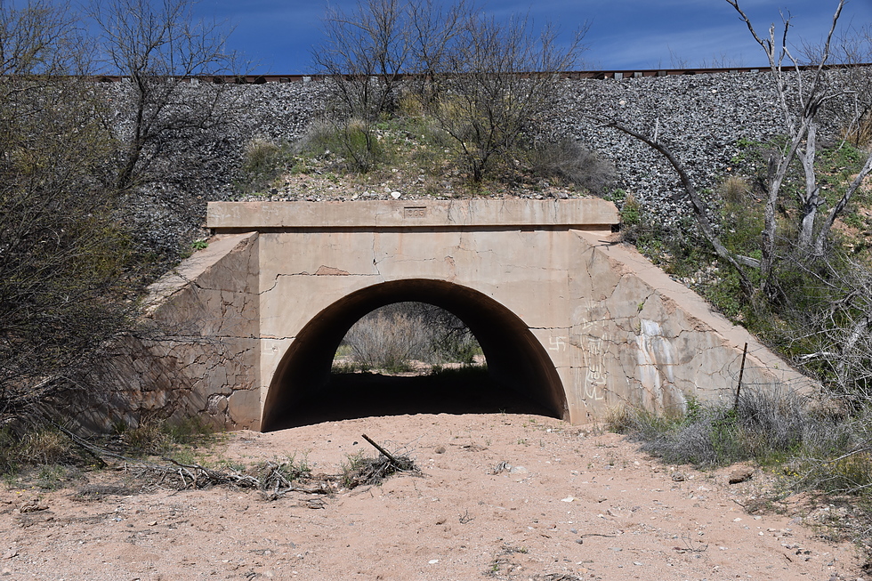 A slightly different tunnel under this section of track. 1905. This use to be the main line for the train but when they redid interstate 10 in this area they bypassed this section. Now it is used as a spur track. I think they use this spur to switch out engines