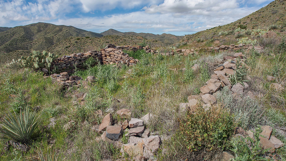 Looks like maybe four rooms in this view. The external walls are buried almost to the tops on the sides facing out in this view. It appears that the interior has been dug down to the base of the walls by archaeologists or pot hunters. Perhaps they dumped dirt removed from the interior on the outside of the walls. Or, perhaps the original structure was constructed partially below ground level.