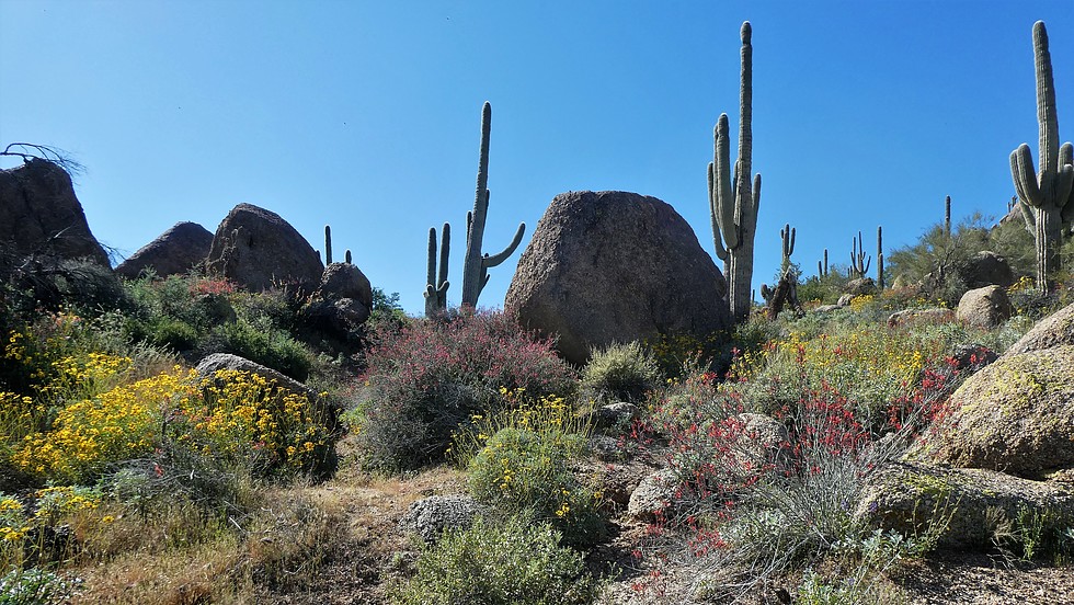 some more of the chuparosa, boulders and saguaros on this section of the hike.
