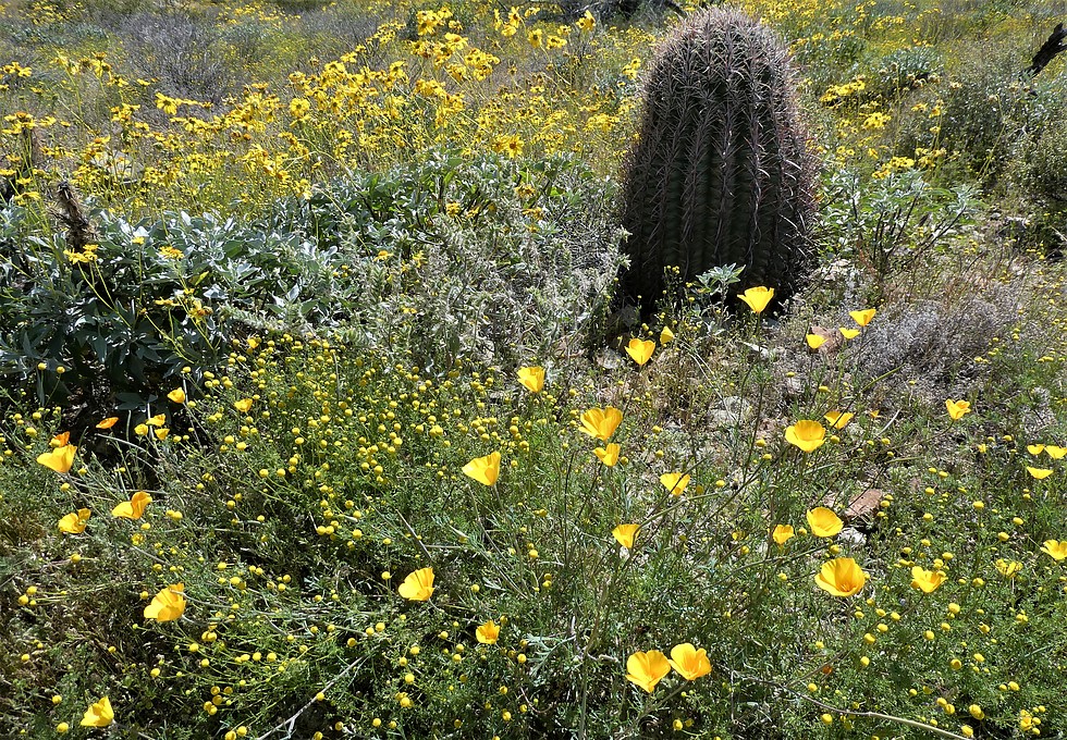 I like the sound of mellow yellow but there's really nothing mellow about these yellows: Poppies, Chamomile, Brittlebush