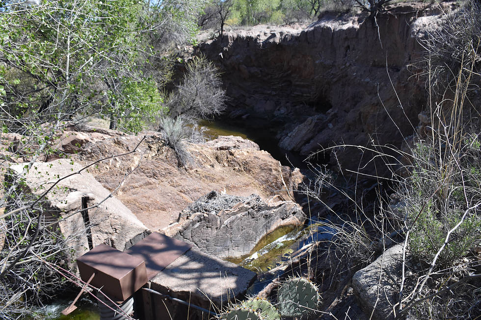 The rock beds in this area are vertical but down stream (along cliff in photo) they are more horizontal. Something really interesting went on here