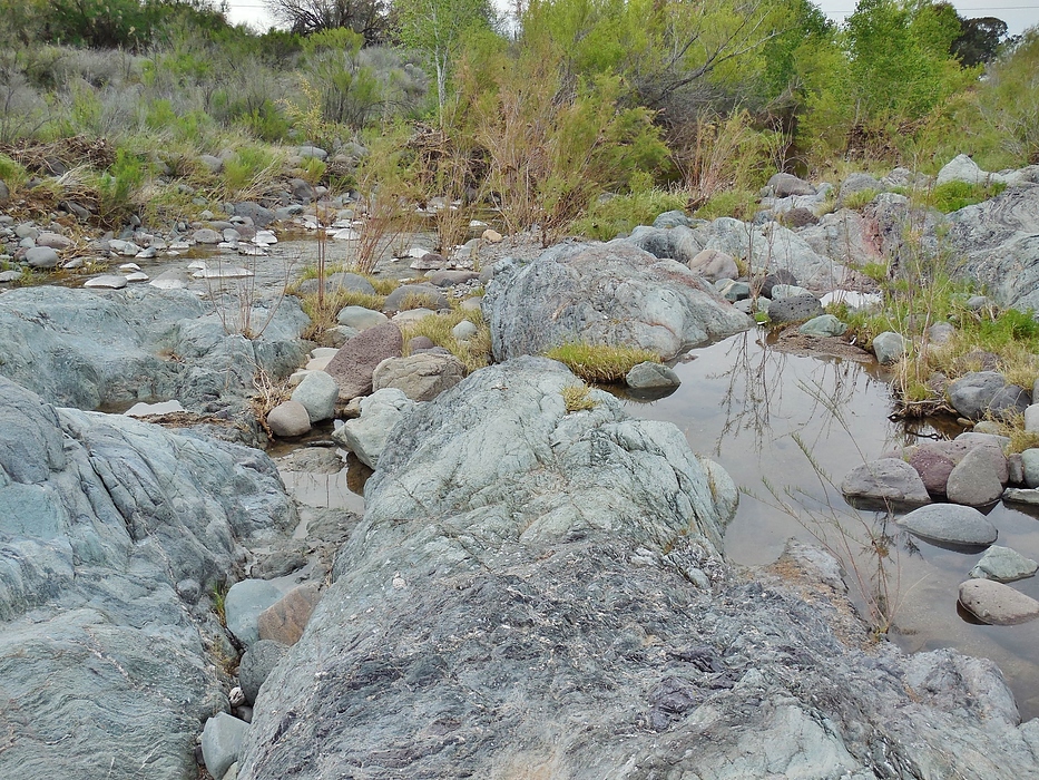 Boulder hopping along the creek. The pool on screen right was a good 5 feet above the level of the creek. This was commonplace all along this bedrock area. Shows you how high the creek can rise.