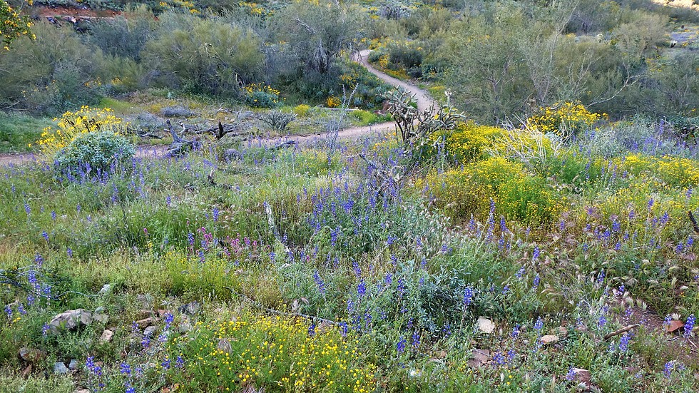 This is the Clay Mine Trail? coming in to join up with the Go John Trail. Lots of flora here including Owl Clover, Lupine, Stinknet and Brittlebush.