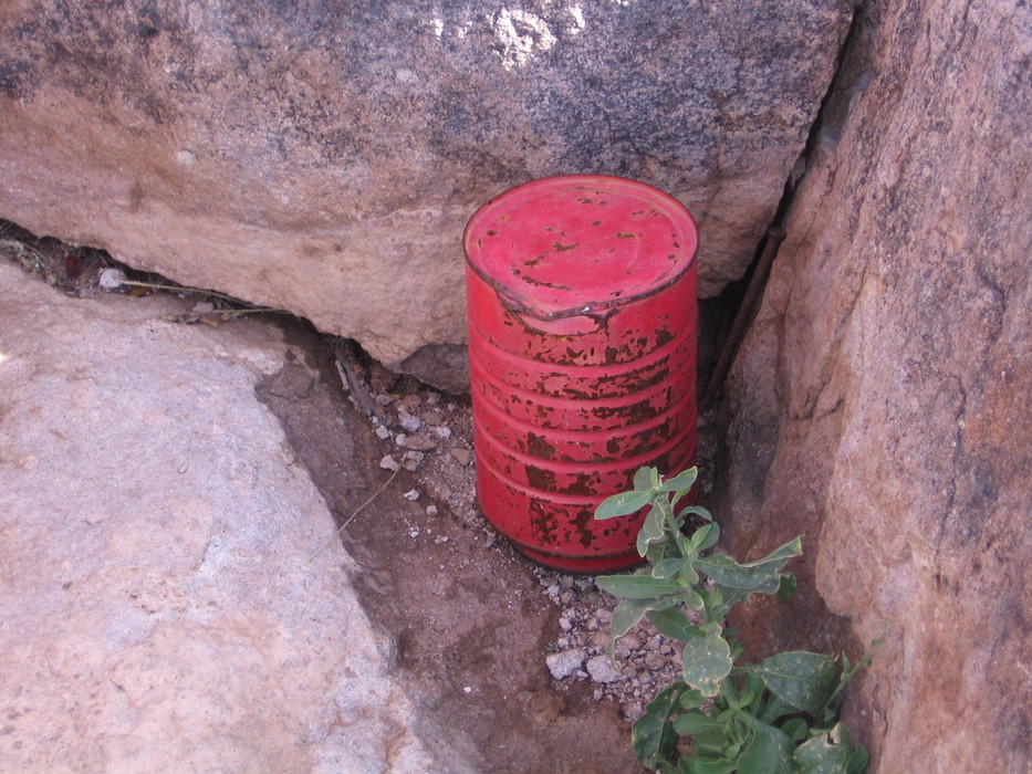 the red can holding the logbooks on Superstition Mountain (Peak 5057)