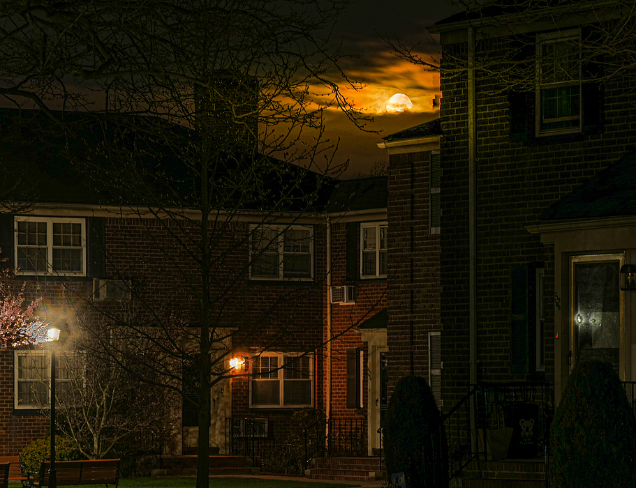A a hiker, we occasionally, and maybe often, get up early to catch a sunrise or moon set over a lake or mountain or valley. Here, I rise early to catch the moon over a . . . non-descript but nonetheless neatly appointed apartment complex, and a home for many residents.