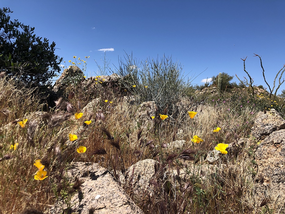 A fair amount of poppies between the peaks.