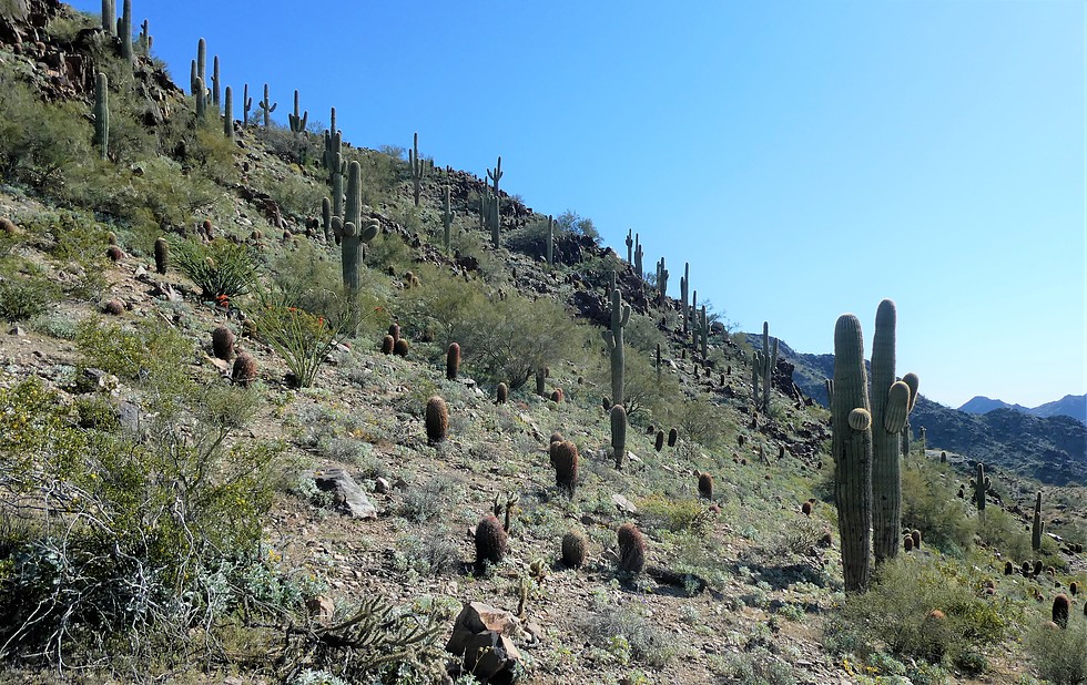 I always appreciate a cactus covered hillside as I look to the NE with lots of saguaros and compass cactus.