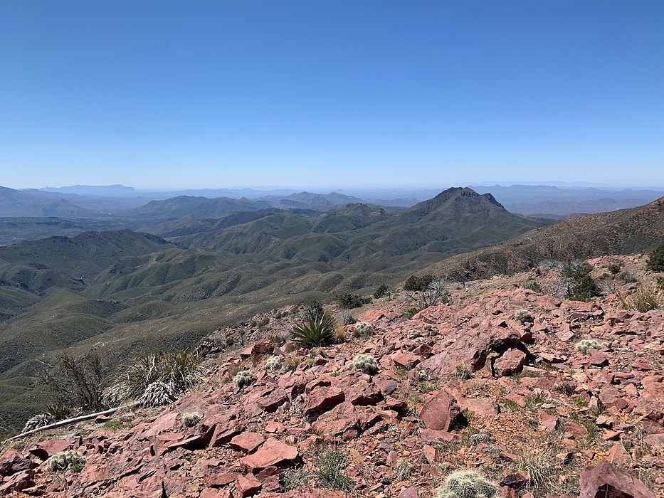 Superstition Mountain hazy in the distance, Saddle Mountain clear and closer