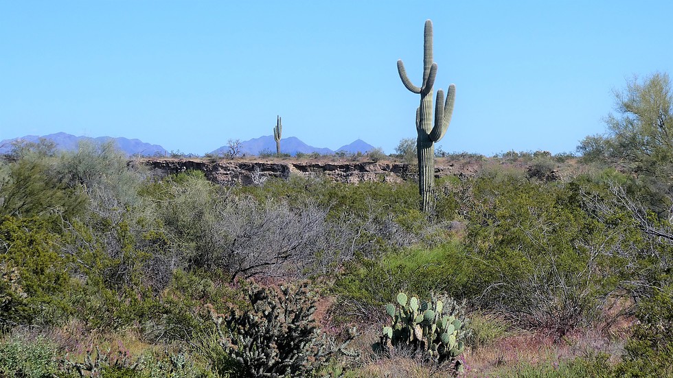 Looking to the WSW at the cliffs and in the background the McDowells including Thompson Peak on the right.
