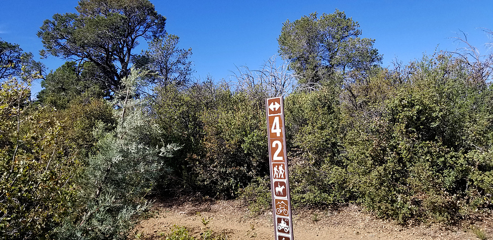 Red Mountain Trail #43 ends, Prospectors Trail #42 goes about...