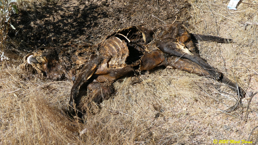 This Black Lab has been here within 25 feet of Bush Highway for over a month, possibly within days of its death. Although I reported it to Maricopa Animal Control, Forest Service and AZ Game & Fish, here it still is.