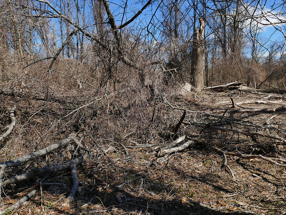Desolation and destruction. I understand this section of the park experienced many issues: heavy growth of invasive vines; poorly rooted black locust trees blowing over; and cherry trees taking over as a dominant species but the forest lacking sufficient diversity to remain balanced. So evidently this whole area will be chopped up and restored.