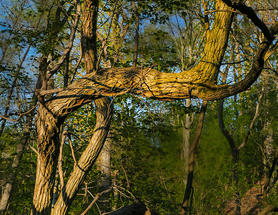 Nature just grows however suits the purpose. I guess this is the tree growing to follow the light, or due to wind or terrain, or just randomly.