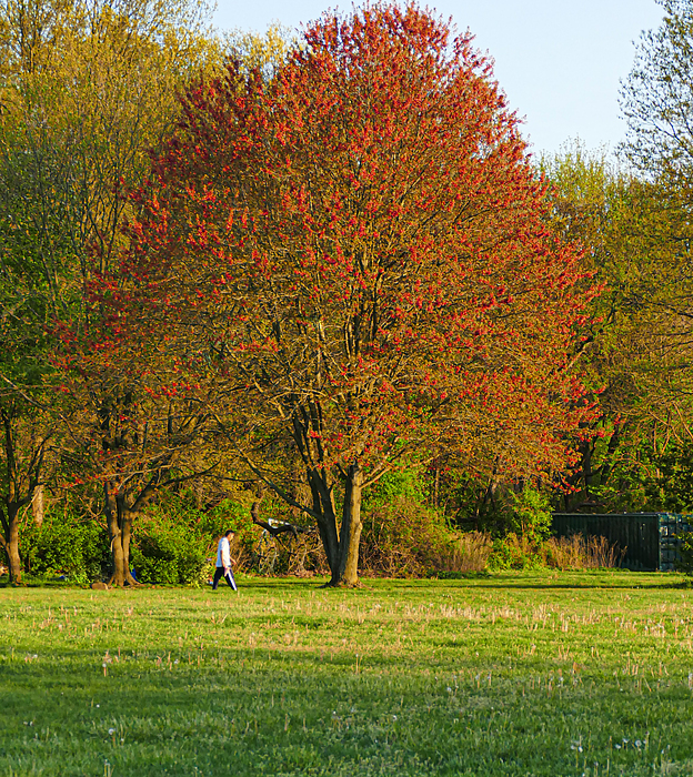 Per my app, a red maple. Nice color against the broader green of the grass and forest. This gentleman though probably isn't interested. He was practicing short iron shots and now is hunting for his golf balls.