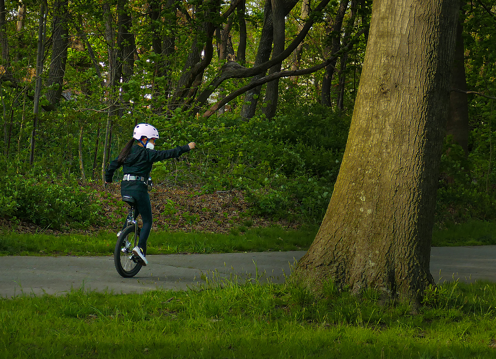 I am impressed. I guess this girl was maybe 10, and she handled riding the unicycle as if she started riding before walking. And as her father (not shown, but off to the left) also rode well, maybe he did start he riding the unicycle about as she started walking.