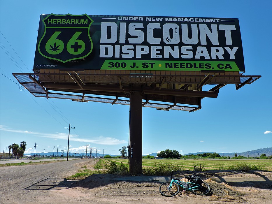 This popular dispensary in California advertises in Arizona. What's in Needles? Lots of dispensaries and grow operations. One would hope the added tax revenue will improve life in the town, but I have seen no evidence of that yet. Needles was once a pretty town, with tree-lined streets and cute cottages. There are some people trying to bring it back to life, but the collective will doesn't seem to be there. It could profit from Route 66 tourism, river location, etc.