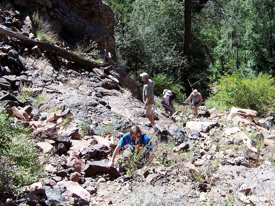 climbing back up to the road from base of falls