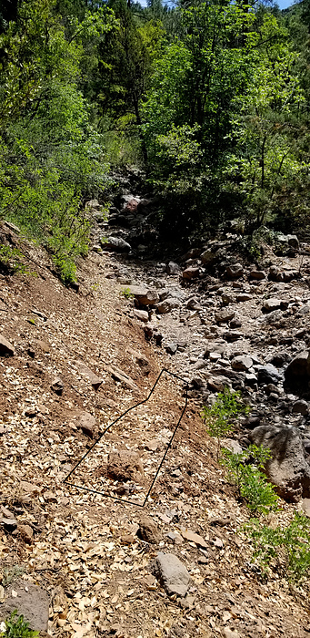 Looking back down at a short little section of trail that the creek is reclaiming.